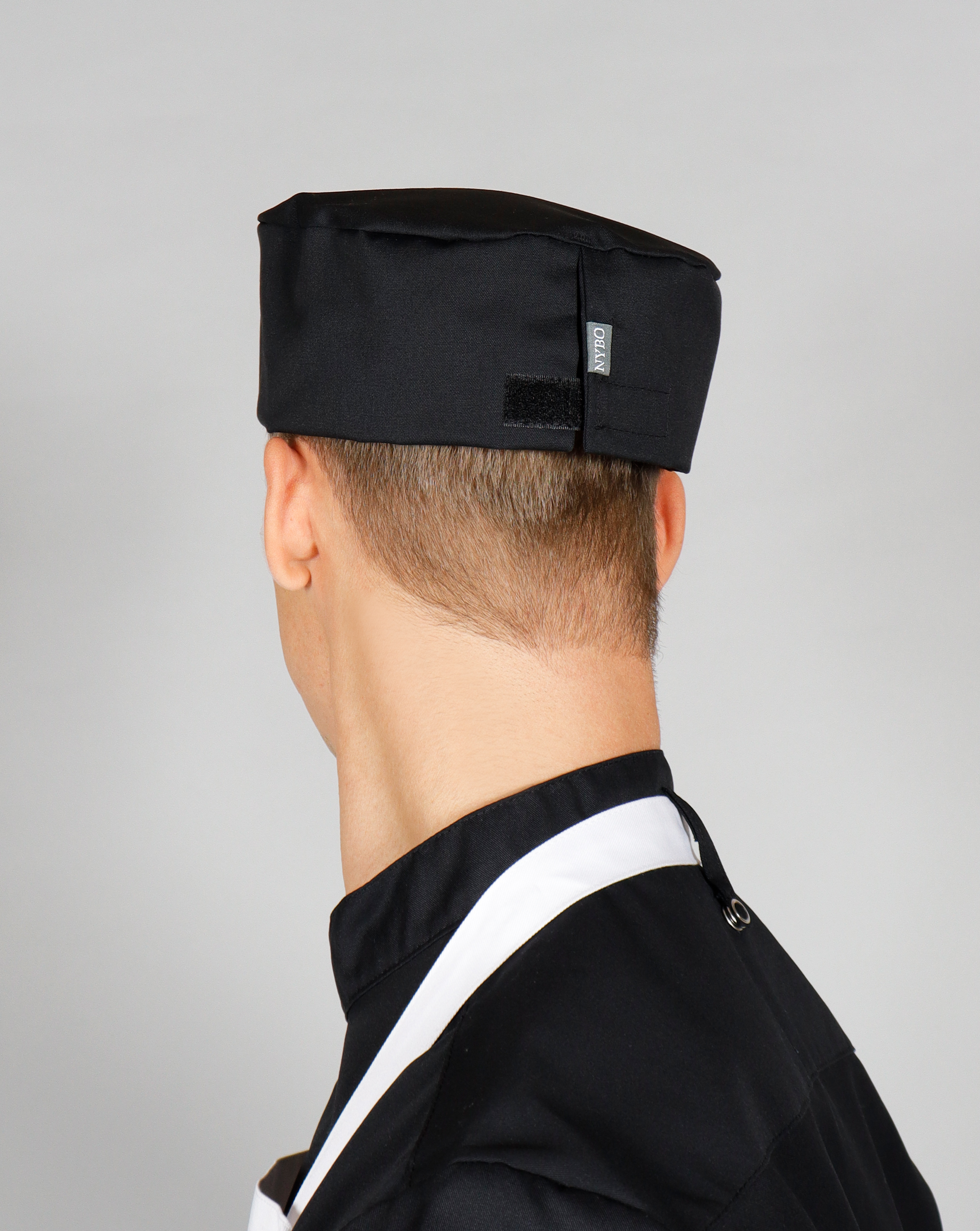 This elegant chef hat combines style and function for a professional kitchen look. The velcro closure at the back ensures a snug, adjustable fit. A clever slit at the rear allows room for a ponytail – ideal for keeping long hair secure and comfortable. One-size fits all.