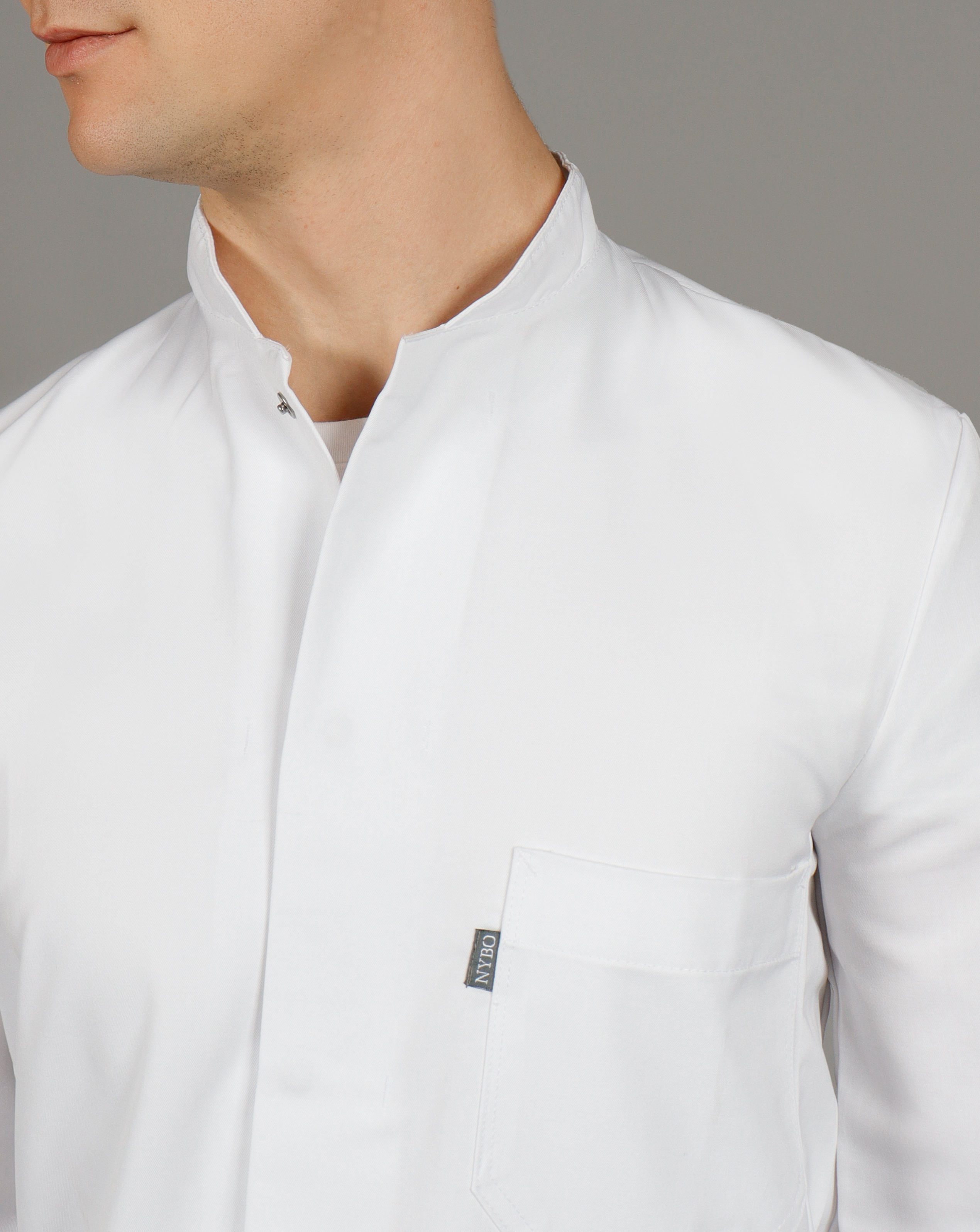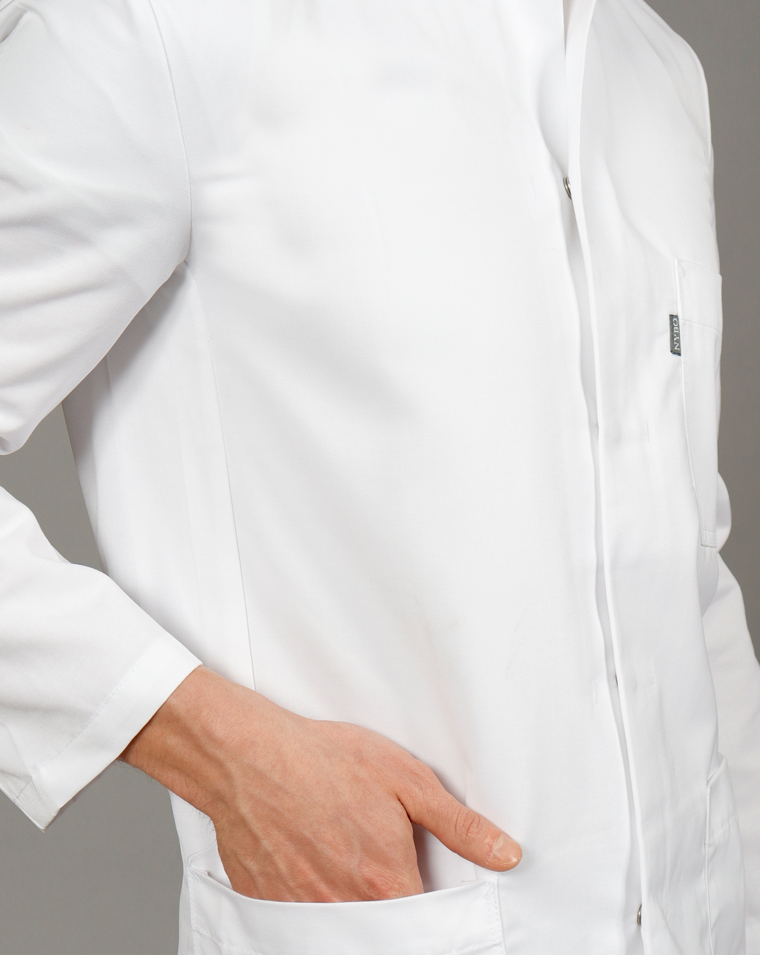 Extra-long men’s coat designed for professional users. Features a modern stand-up collar, three spacious pockets and a hidden press stud closure that provides a neat and practical look. Made from a durable fabric highly suitable for frequent washing and heavy-duty use.