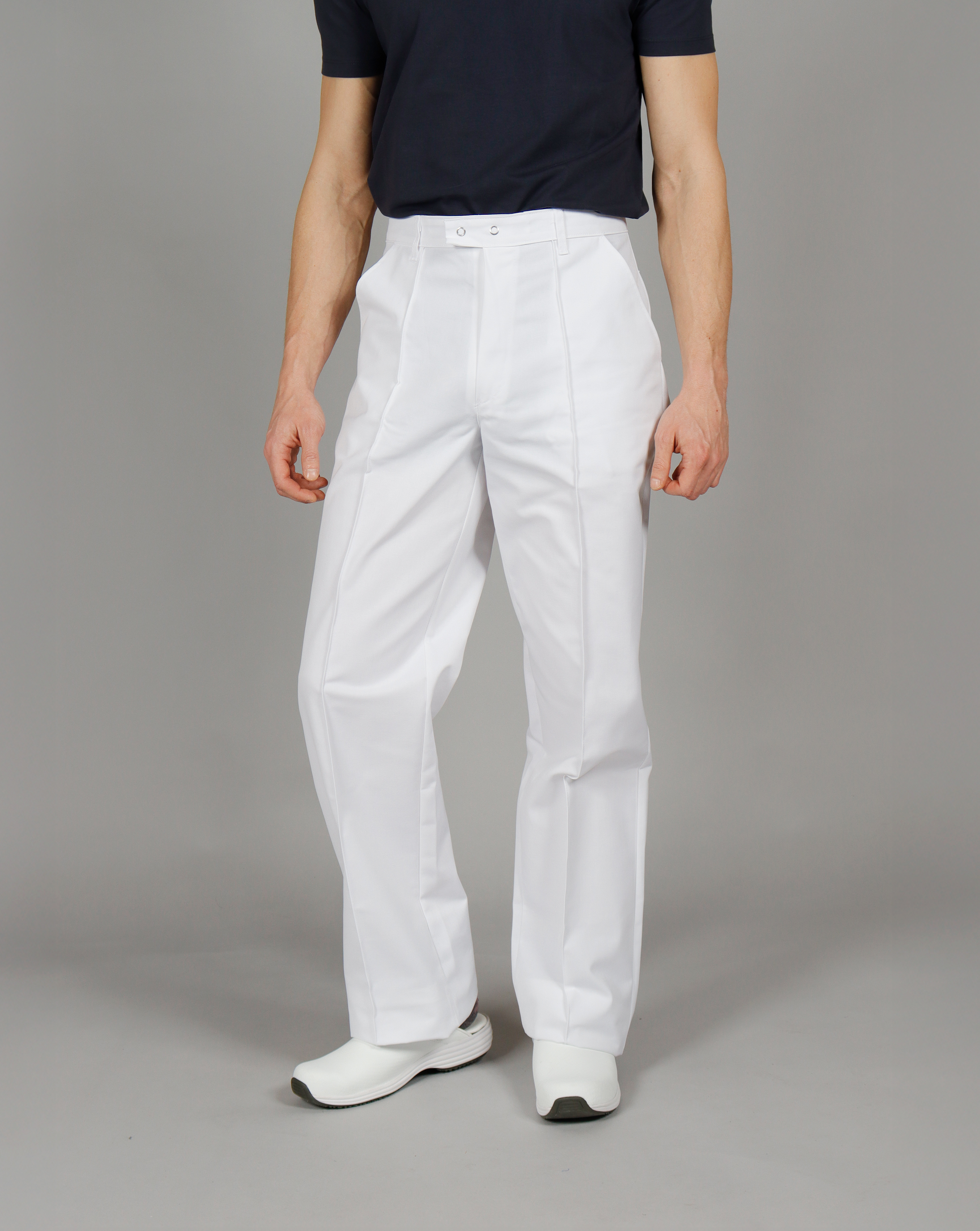These durable men's trousers are designed for those who need functionality and comfort in their everyday work. The classic fit with pleats offers a professional appearance, while deep pockets and belt loops enhance utility. Featuring snap buttons and a zipper fly, these trousers are both practical and robust – perfect for demanding work environments.