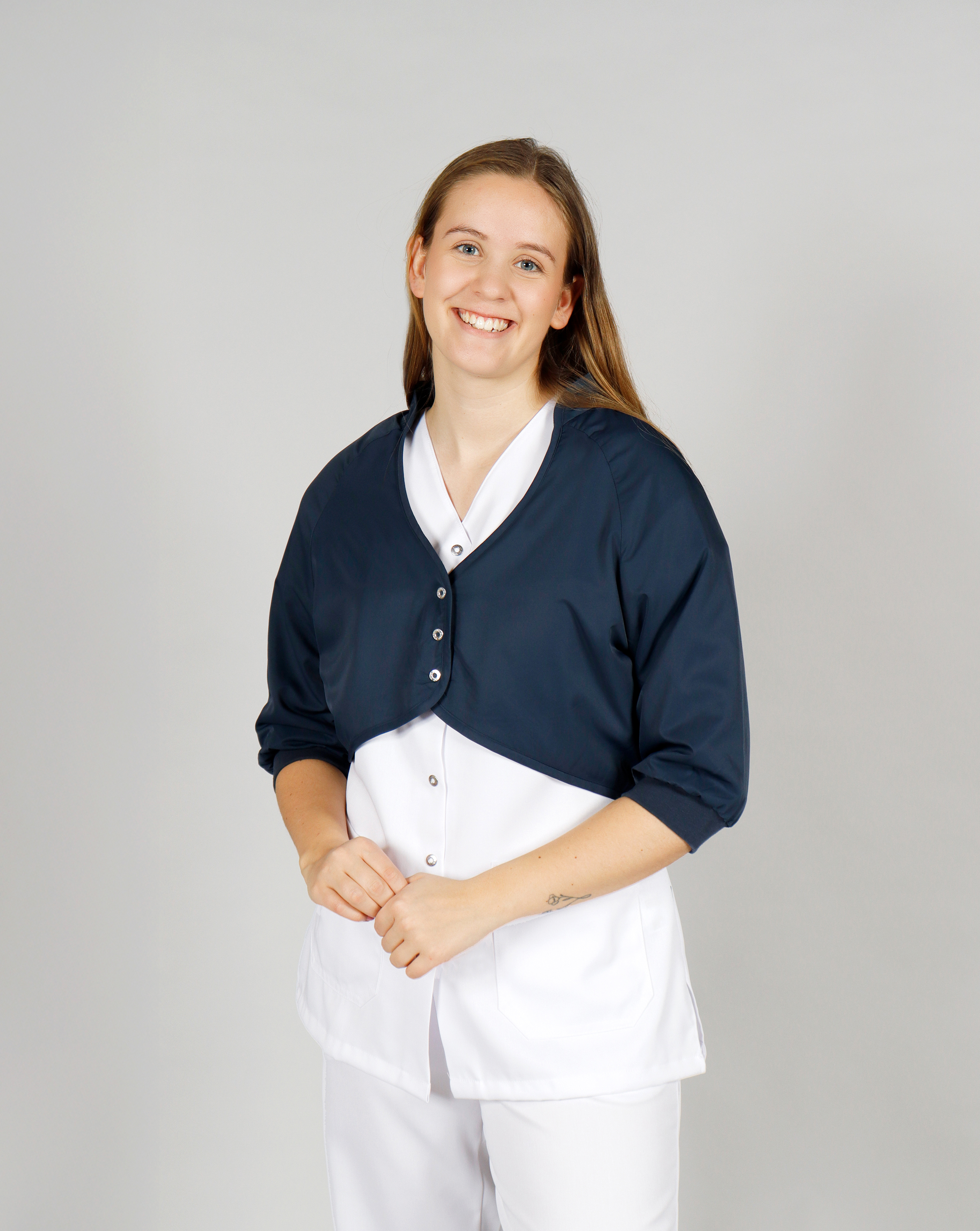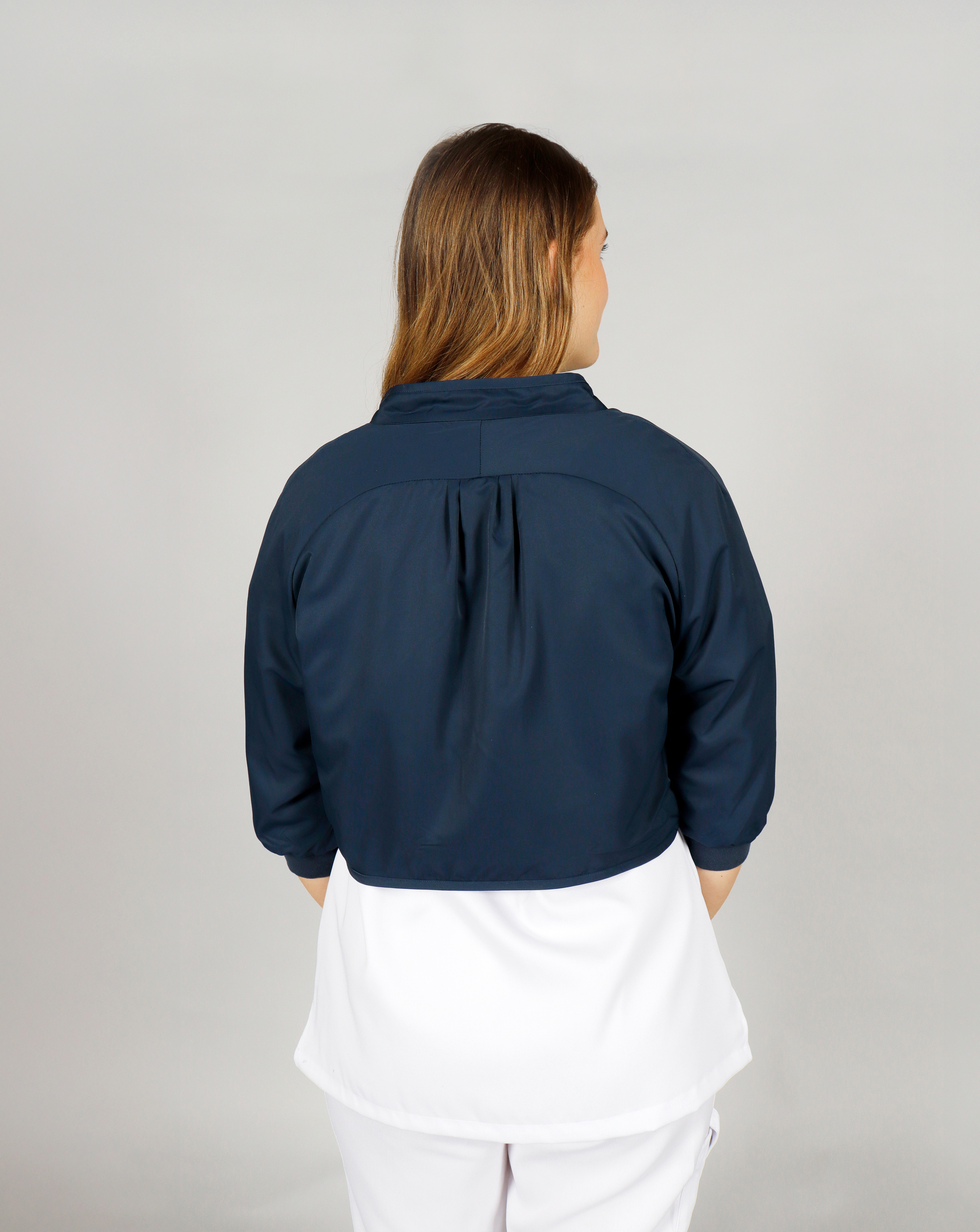 This warm shoulder warmer is designed to keep the upper body comfortable in cold work environments. It features a soft fleece lining, stand-up collar and short sleeves with ribbed cuffs to retain warmth. A back pleat provides mobility, and the dirt-repellent microfiber outer fabric ensures durability. Closes easily with front snap buttons. Ideal for professionals who value both comfort and functionality.