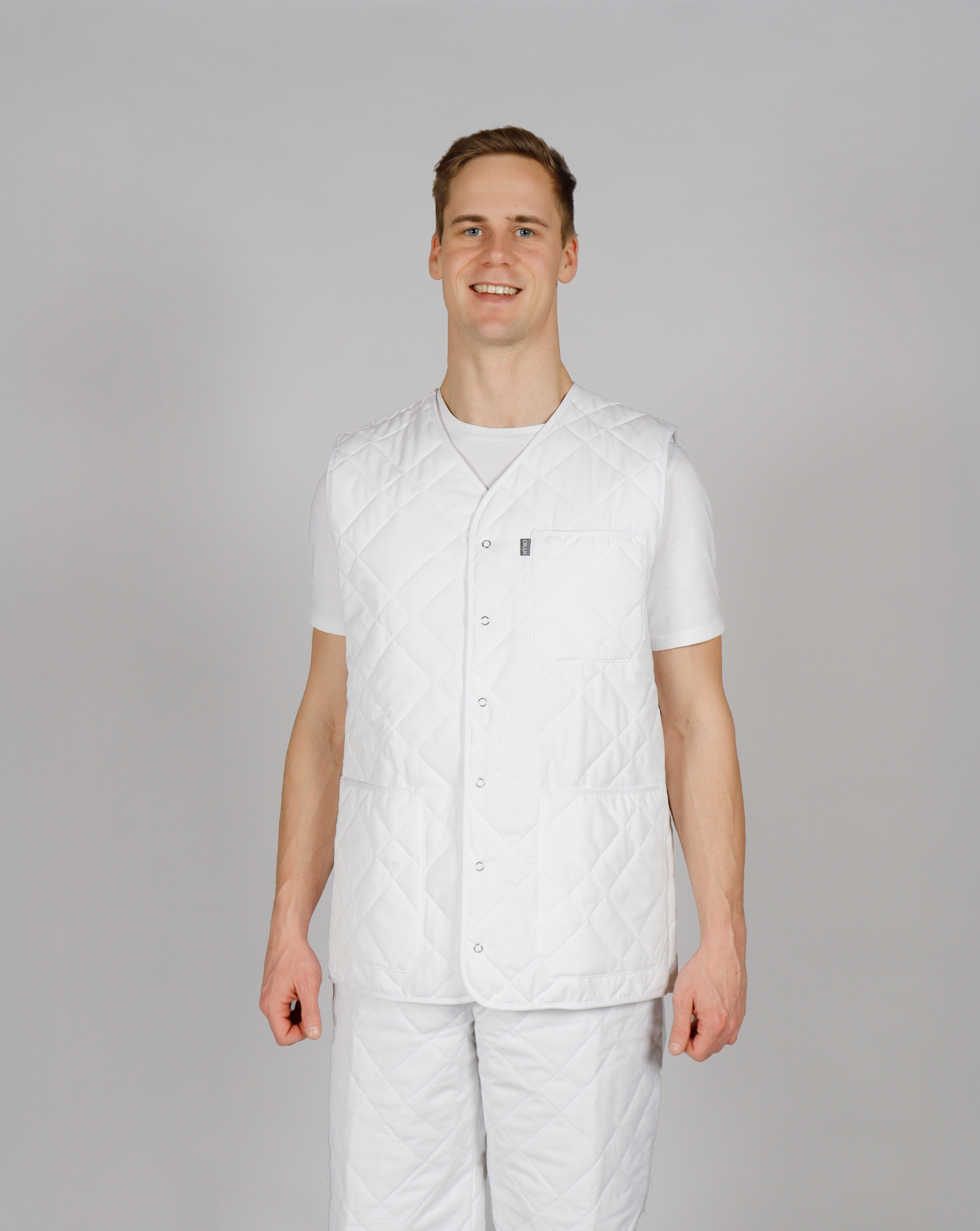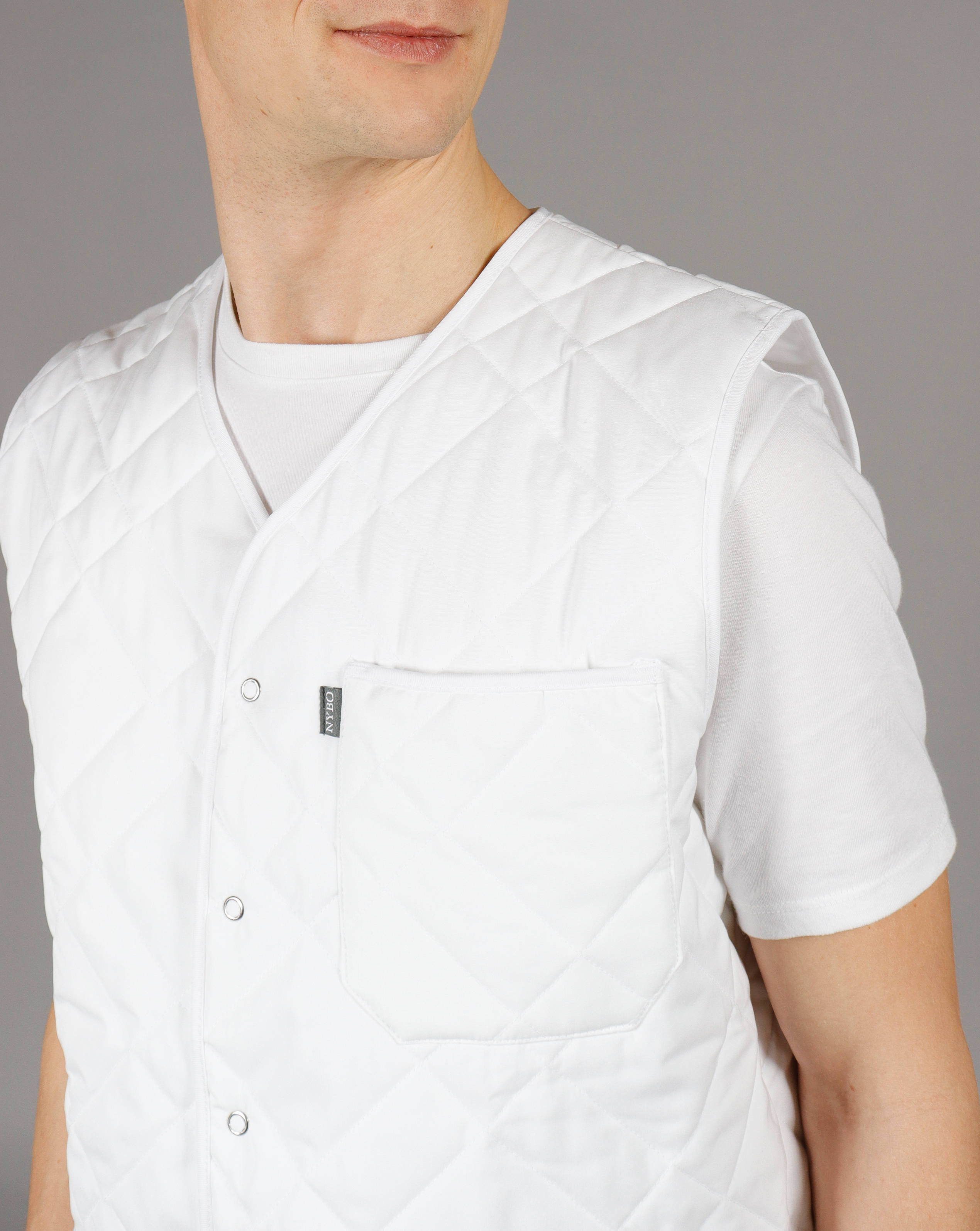 This practical thermal vest is designed to provide warmth and functionality for professionals on the job. It features two spacious hip pockets and a convenient left chest pocket for pens or tools. The front is closed with snap buttons, making it easy to put on and take off throughout the workday.
