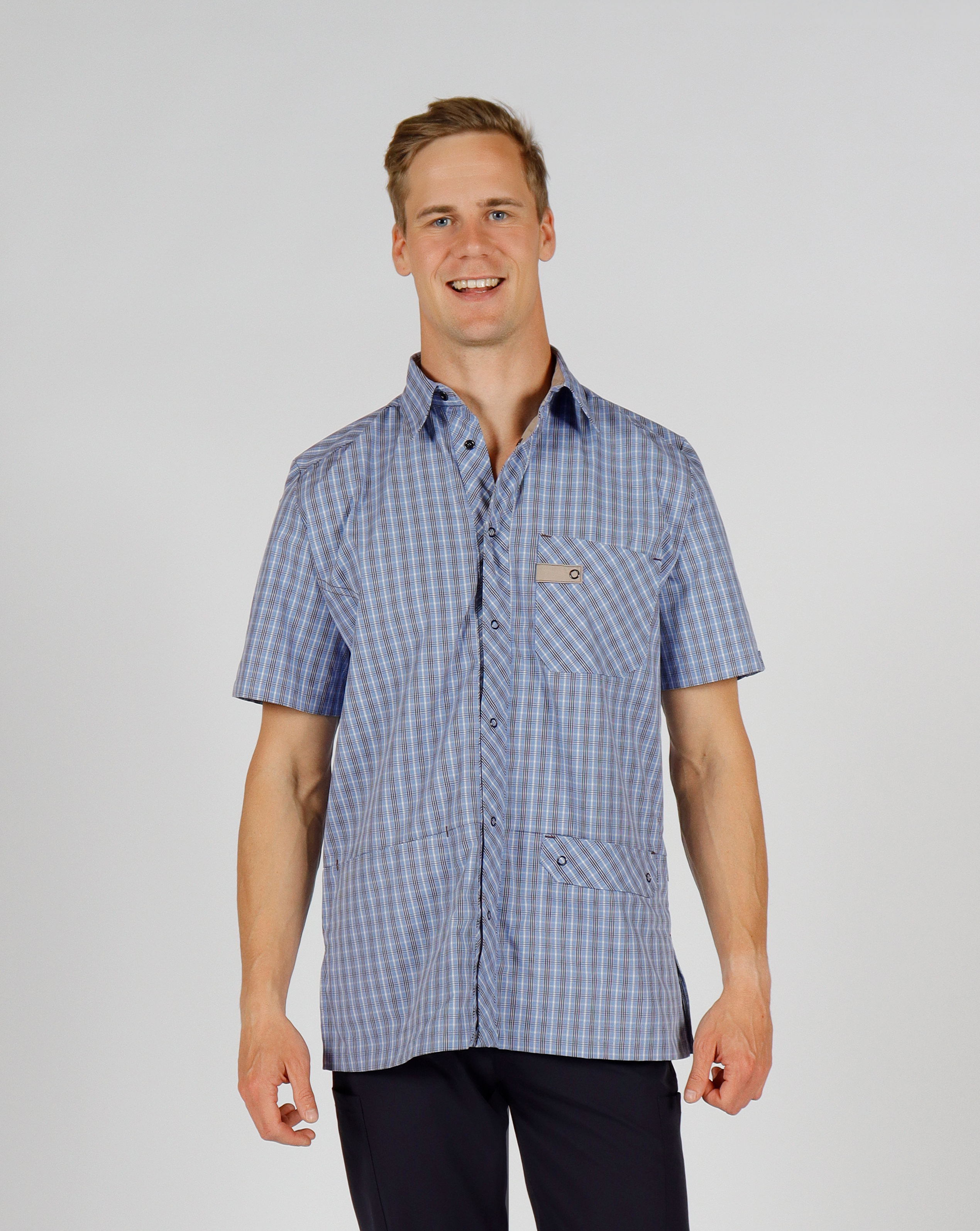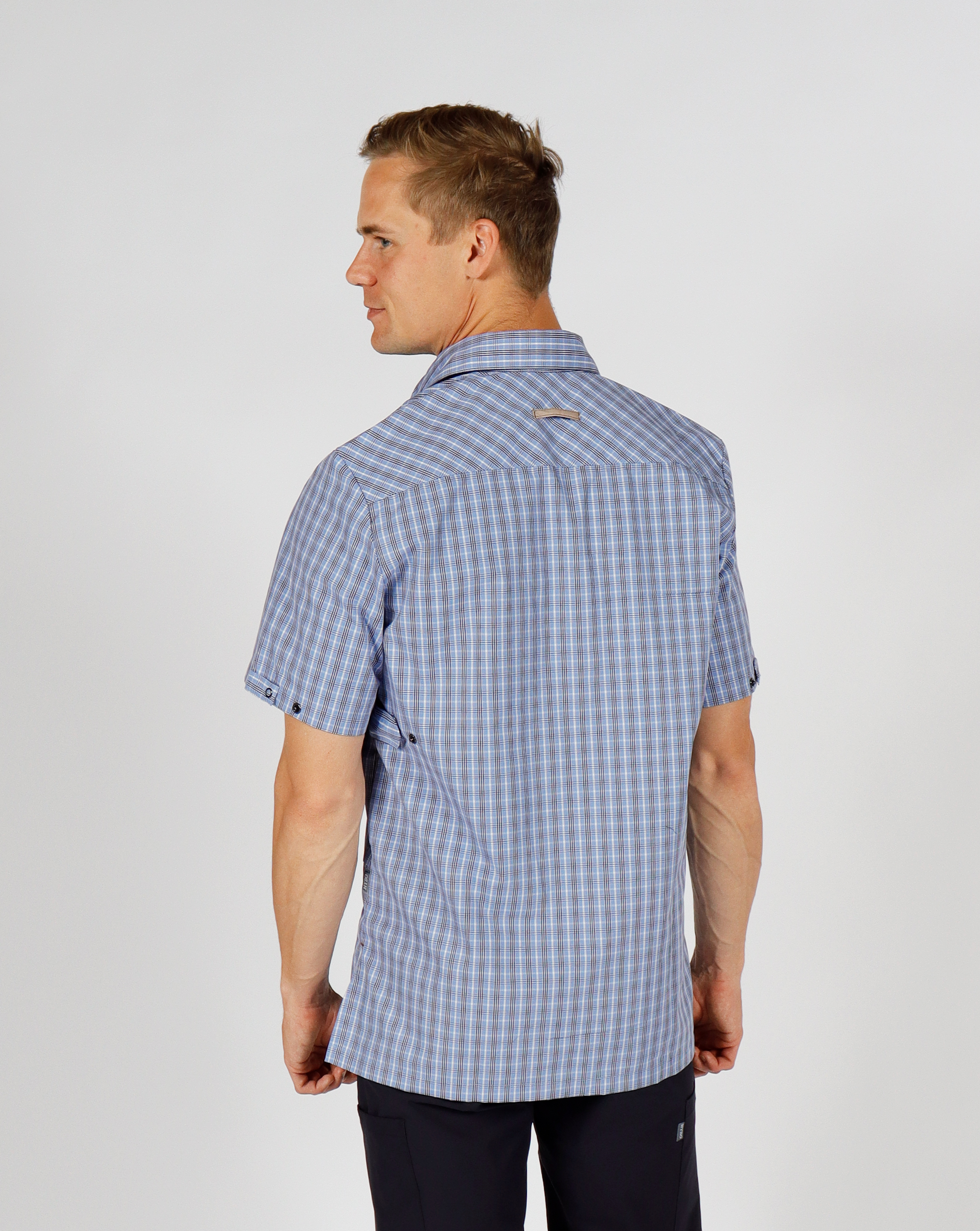 This functional unisex shirt is designed with a focus on comfort and flexibility. Sleeves and back are adjustable to suit the individual user. The shirt features spacious pockets with snap closures, including a phone pocket and key loop in the hip pockets. The chest pocket includes a practical pen holder.