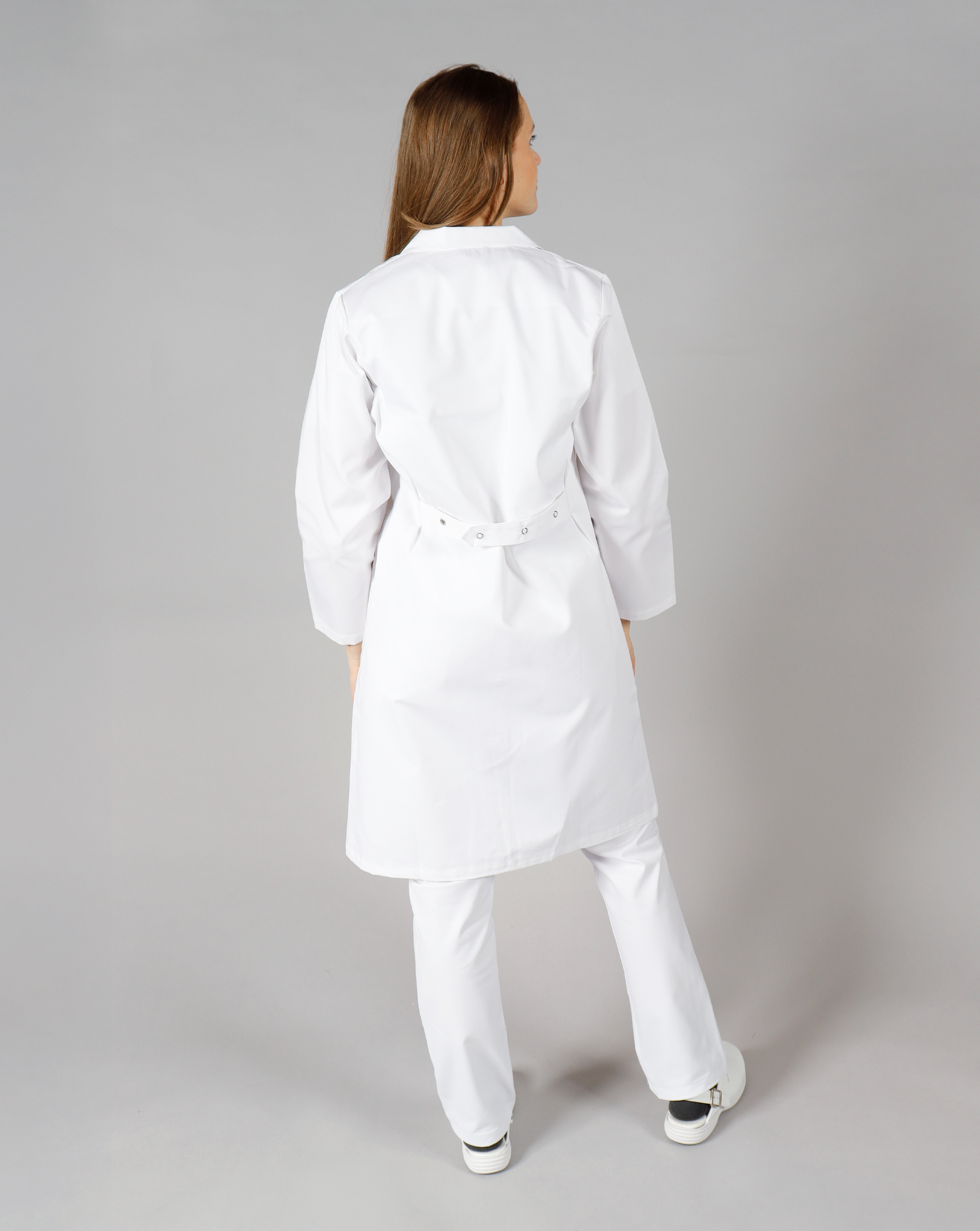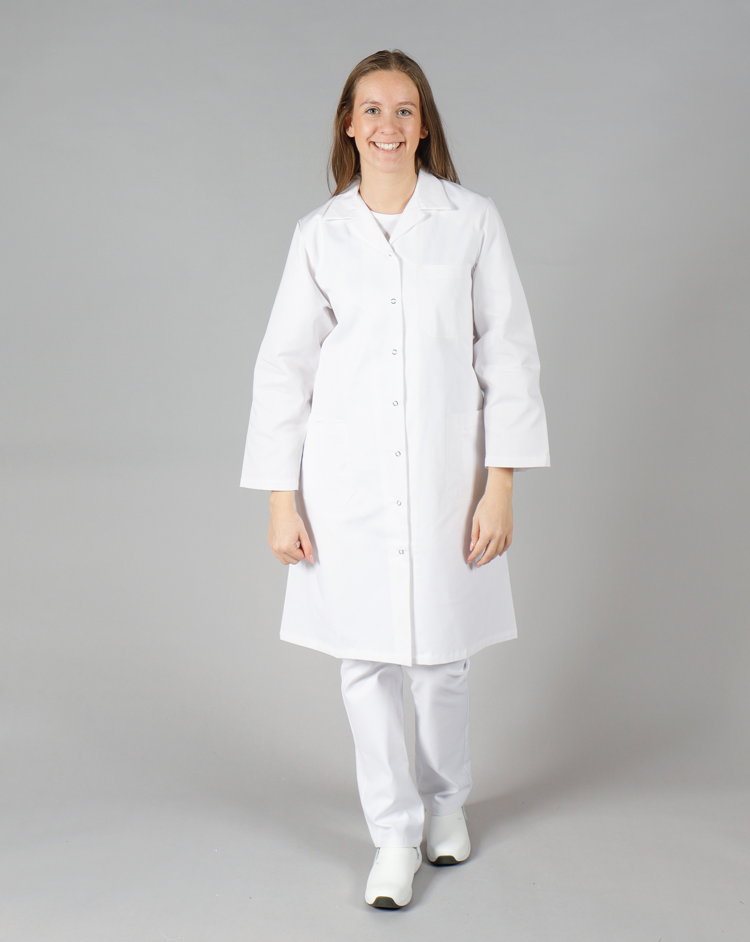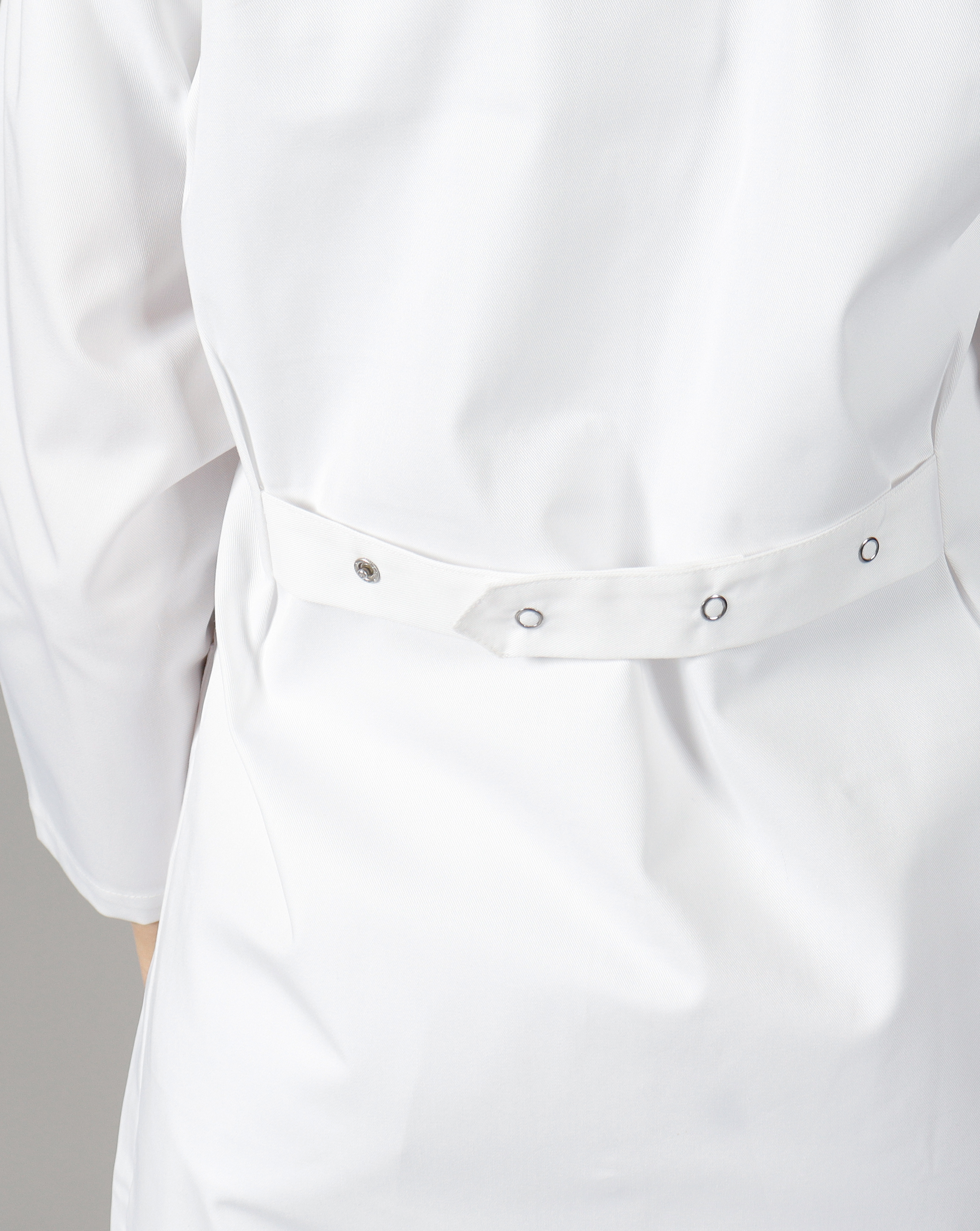 This classic women’s coat is a reliable choice for workwear. With lapel collar and three spacious pockets, it combines functionality and style. The hidden button placket ensures a clean look, while the adjustable back provides enhanced comfort and fit. Made from durable material and featuring an internal neck loop for easy hanging.