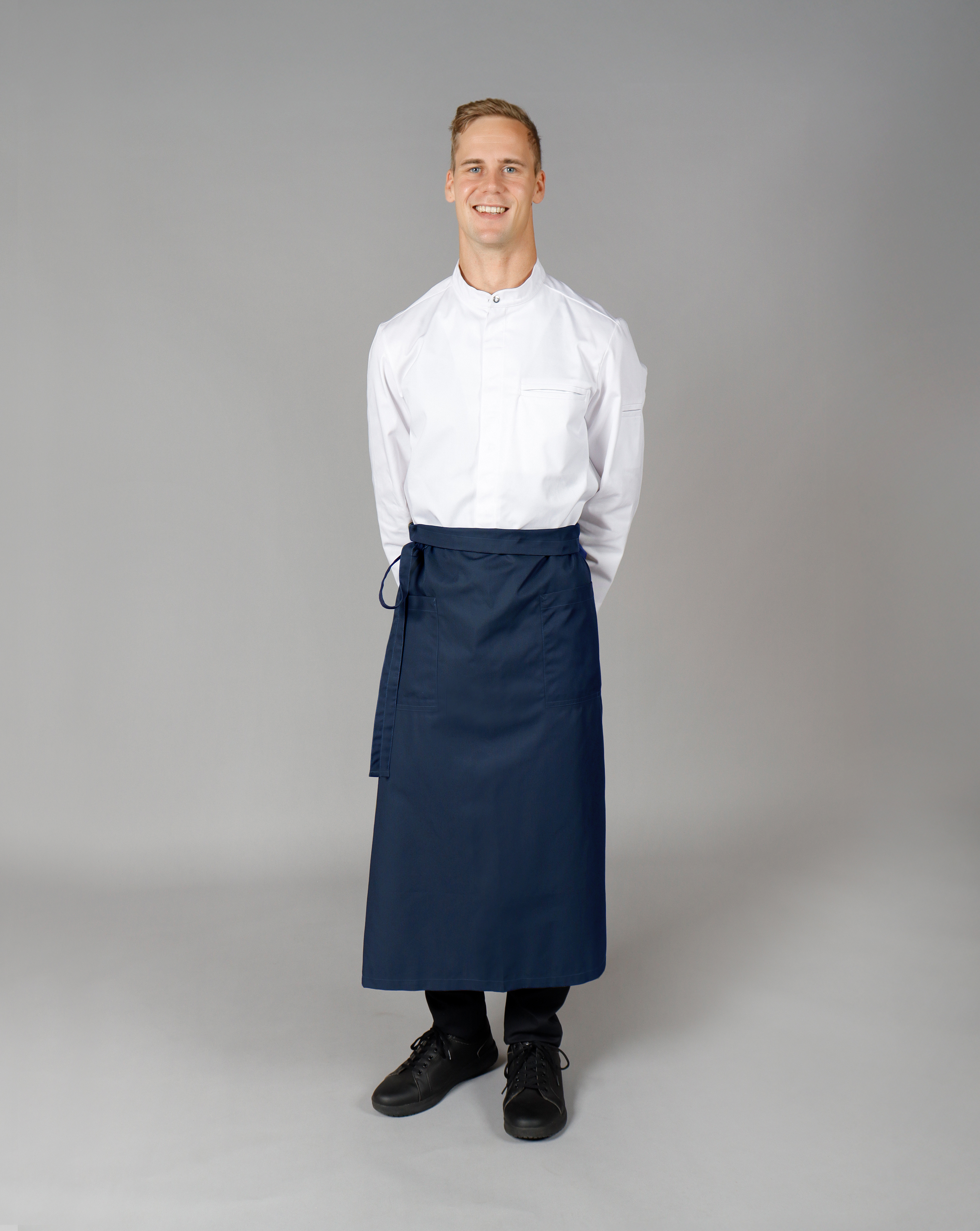 Classic short front panel with attached tie band, drawstring casing, and two pockets – a flexible and functional choice for everyday use.