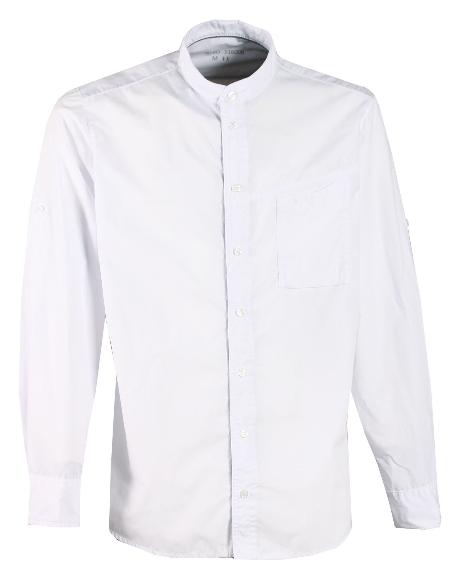 Our Gastro jacket/shirt is the perfect choice for both men and women working in restaurants and kitchens. Featuring traditional front and cuff buttons, a practical chest pocket, and a low collar for a classic, understated look. Sleeves can be rolled up and secured with a strap, and a back neck loop keeps the apron in place. The back construction ensures added flexibility and stretch, with extended length and slits to provide maximum comfort and freedom of movement.